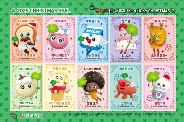 2025년도 크리스마스 씰은 ‘시즌2 브레드이발소와 함께하는 LUCKY CHRISTMAS’이다. 지난해에 이어 2년 연속 소재로 선정된 브레드이발소는 브레드와 윌크, 초코 등이 출연해 이발소를 배경으로 일어나는 이야기를 다룬다. “네 잎이 모이면 나한테 행운 옴”,“이거 완전 럭키비키잖아?”등 10개의 문구가 씰에 담겼다. 기부스토어(loveseal.knta.or.kr)와 전국 우체국 창구, GS편의점, 초ㆍ중ㆍ고를 통해서 모금운동에 동참할 수 있다. 키링ㆍ마그넷ㆍ파우치ㆍ에코백 등 실용성에 중점을 둔 굿즈도 선보이며 선택의 폭을 넓혔다. 1953년부터 대한결핵협회가 제작해온 씰은 결핵의 위험을 알리며 대표적인 기부 통로로 자리매김했다. 한 장에 3000원씩 씰을 판매해 모은 모금액은 결핵 환자 발견 및 치료 지원, 대국민 결핵 인식 개선 사업 등에 사용된다.
