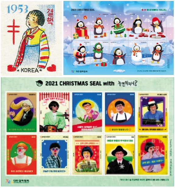 숭례문을 도안으로 한 씰은 1940년까지 9개가 발행됐다. 이후 일제에 의해 중단됐던 씰 운동은 1949년 문창모 박사가 주도해 한국복십자회에서 재개했다. 1953년에는 대한결핵협회가 창립되면서 범국민적인 모금 운동으로 펼쳐지게 됐다. 협회의 첫 씰 주인공은 색동저고리 소녀였다. 1988년에는 ‘농악놀이’가 국제 크리스마스 씰 콘테스트에서 1위를 차지하기도 했다. 2000년대부터는 어린이와 MZ세대 기호에 맞춰 김연아와 뽀로로, 펭수, 유재석, 손흥민 등 우리 사회에 선한 영향력을 전파하거나 웃음을 안겨주는 인물과 캐릭터와 협업한 씰을 선보였다. 씰 모금 운동은 이제 우표 옆에 붙이는 형태만은 아니다. 전자파 차단스티커부터 머그잔과 키링(열쇠고리), 파우치, 책갈피 등 실용성 높은 상품을 개발해 일명 ‘그린씰’을 함께 내놓고 있다.